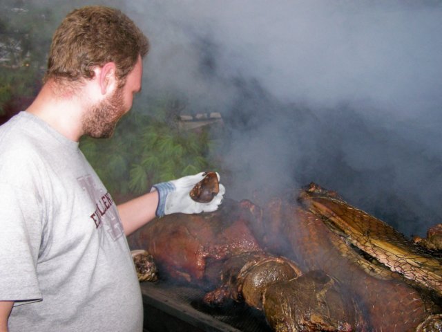 Co-Chairman John right after the meat was put in the smoker.