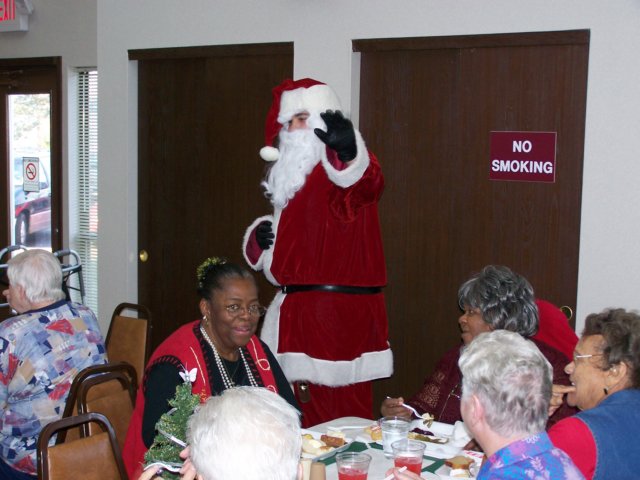 Santa entering the community room at Jaycee Village.